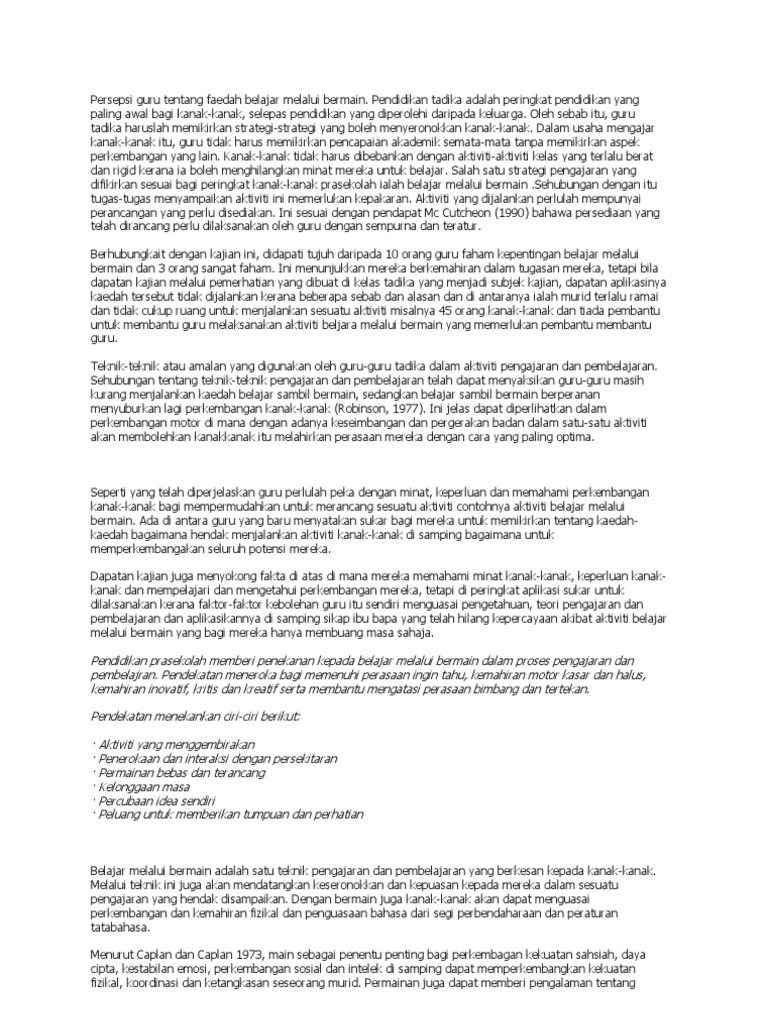 Doc 61797743 Pengajaran Dan Pembelajaran Melalui Kaedah Bermain Jessita Francis Academia Edu