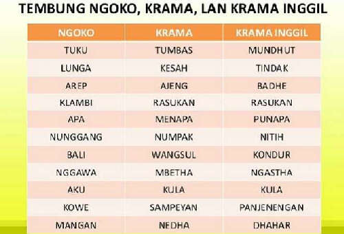 Agar krama inggil kita tetap ada di tanah jawa ini mari kita lestarikan bahasa krama inggil. Secara sederhana bahasa jawa ngoko digunakan oleh seseorang pada seseorang lain yang seusia atau sudah dikenal dekat. Yang lebih lengkap lagi 51 tembung ngoko krama madya krama inggil perangane awak anggota tubuh manusia makanya dari situ mari kita belajar bersama apa saja kromo inggilnya anggota badan kita. Warna dalam bahasa arab dan artinya.