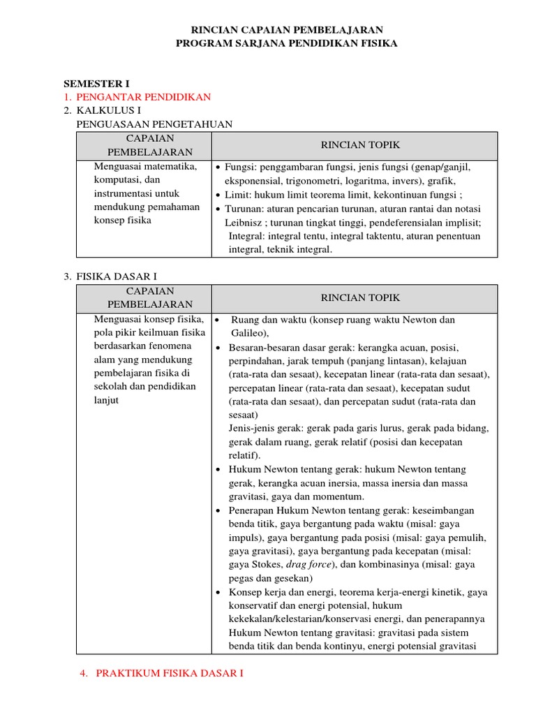Rincian Cp Program Sarjana Pendidikan Fisika Per Mata Kuliah