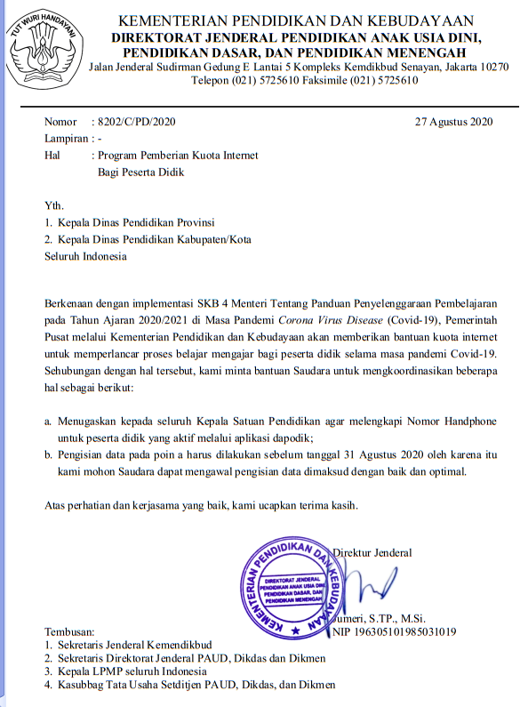 Persesjen Kemdikbud 14 Tahun 2020 Tentang Juknis Bantuan Kuota Data Internet Tahun 2020 Jogloabang