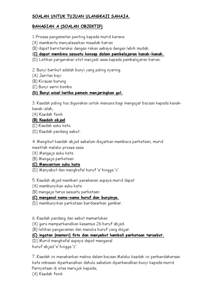 Soalan Untuk Tujuan Ulangkaji Sahaja