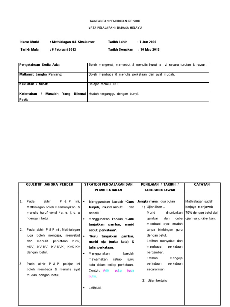Boleh Mengenal Menyebut Menulis Huruf A Z Secara Turutan Rawak Boleh Membaca Menulis Perkataan Dan Ayat Mudah Belajar Melalui Ict Mudah Terganggu Dengan Bunyi