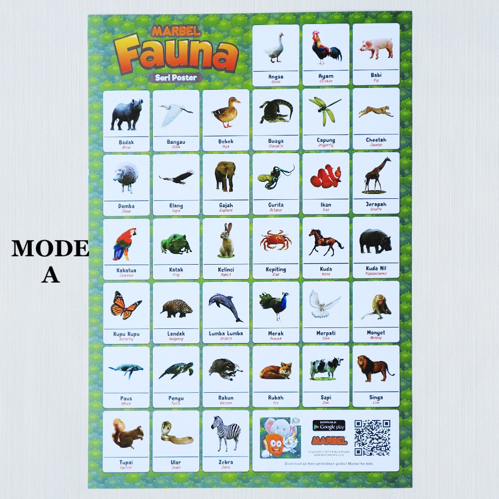 Poster Hewan Mode A Nama Hewan Alat Peraga Pendidikan Tk Sd 2 Bahasa Pusat Mainan Dan Kebutuhan Anak Marbel Junior Store