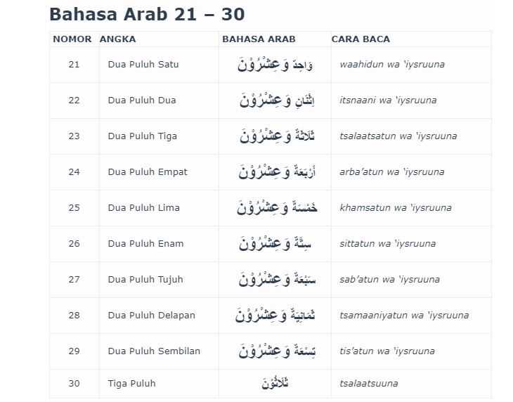 Angka Dalam Bahasa Arab Dari 1 100 Lengkap Beserta Arab Latinnya