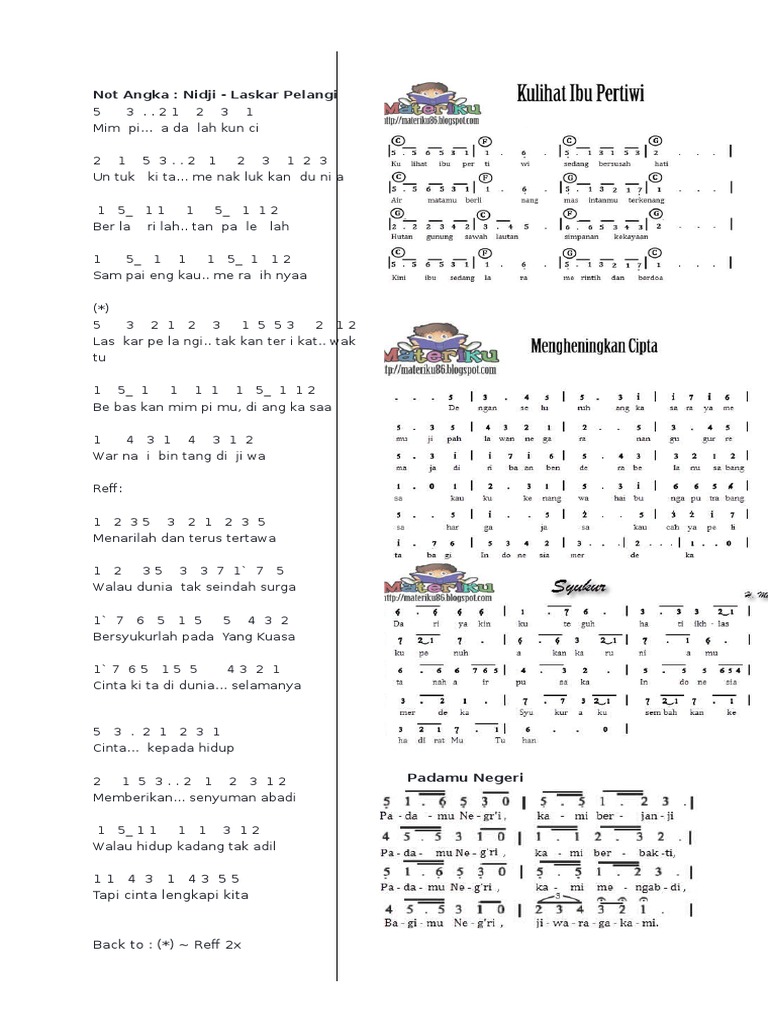 Not Angka Dan Chords Lagu Pergi Belajar Inline
