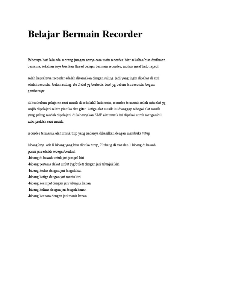 Belajar Bermain Recorder Kaskus Archive