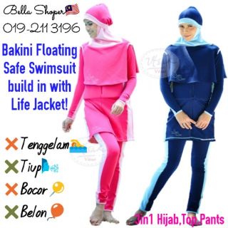 Bakini Floating Burkini Safe Swimming Bikini Life Jacket Muslimah Baju Renang Terapung Swimwear Pink Purple Blue Black Shopee Malaysia
