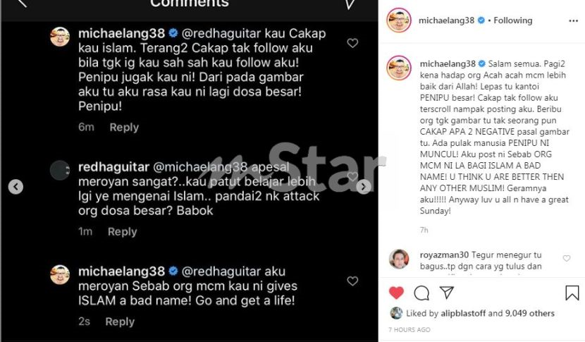 Ini Kehidupan Saya Antara Saya Dengan Allah Michael Ang Berang Netizen Tegur Penampilan Nampak Aurat Hiburan Mstar