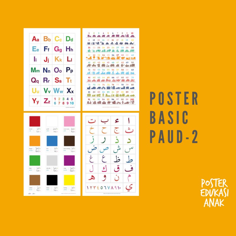 Paket Poster Basic Paud 2 Belajar Alfabet Angka Warna Dan Hijaiyah Untuk Anak Paud Tk Shopee Indonesia