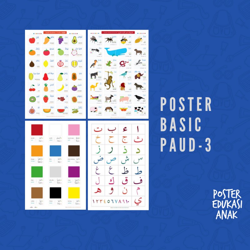 Paket Poster Basic Paud 3 Media Edukasi Anak Belajar Bahasa Arab Buah Hewan Warna Dan Hijaiyah Shopee Indonesia