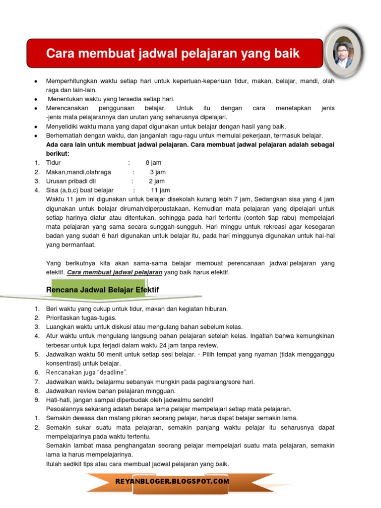 Cara Membuat Jadwal Pelajaran Yang Baik