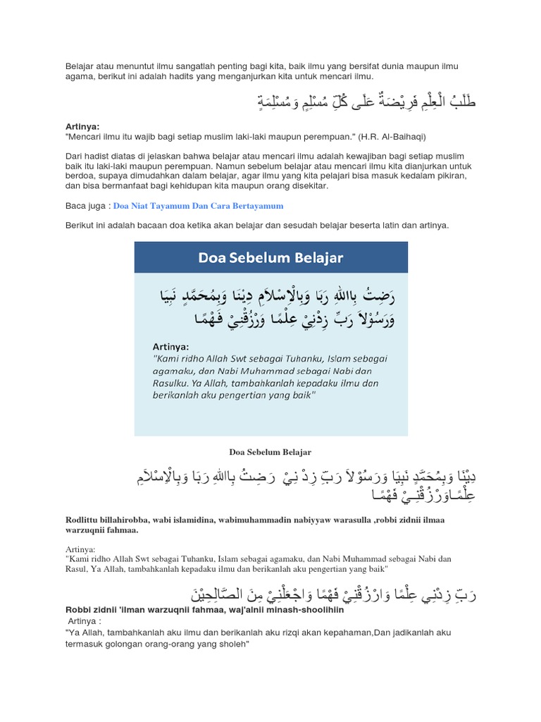 Kumpulan Doa Sebelum Belajar Dan Sesudah Belajar Latin Arti Lengkap