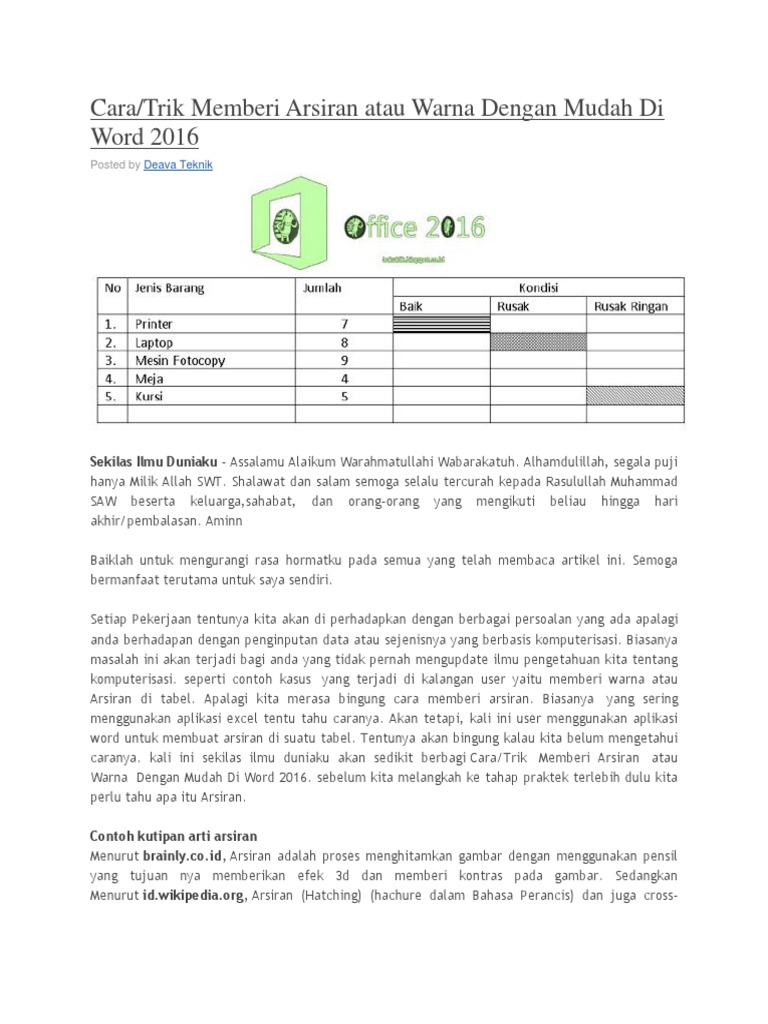 Arsiran Dan Tekniknya Februari 2018