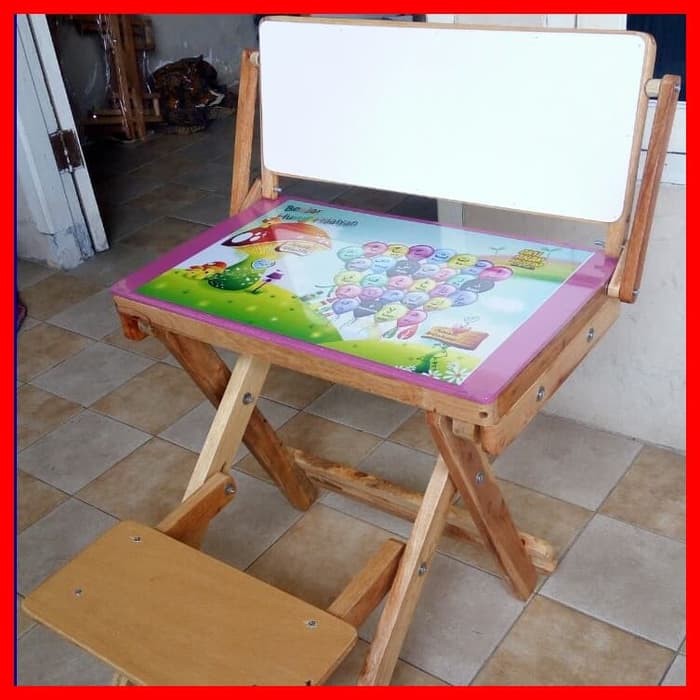 Meja Belajar Lipat Anak Bangku Bahan Kayu Mahoni Kuat Gambar Bagus Shopee Indonesia