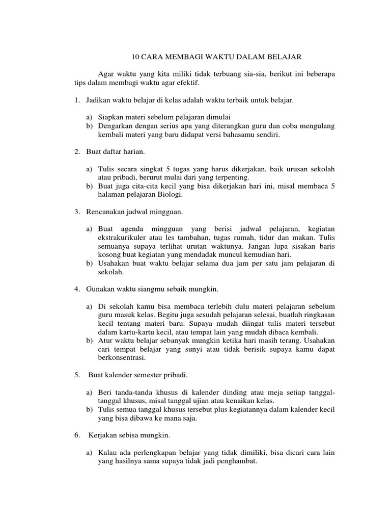 10 Cara Membagi Waktu Dalam Belajar