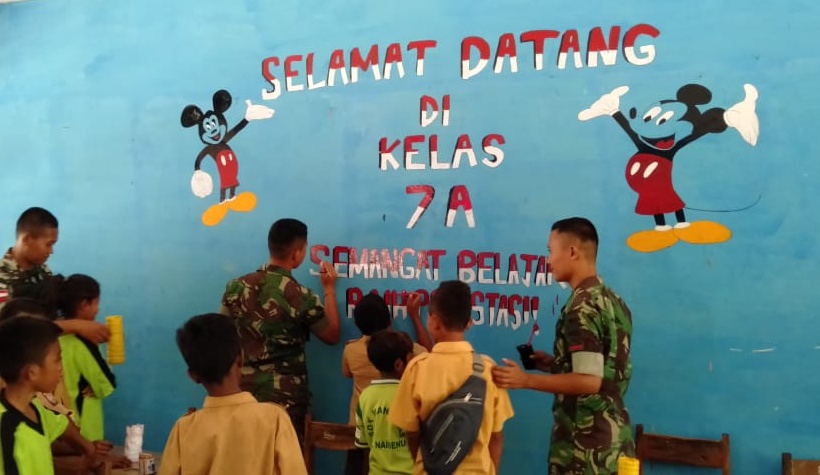 Tumbuhkan Motivasi Belajar Siswa Satgas Yonif 132 Bs Hiasi Ruang Kelas Dengan Lukisan Pos Kupang