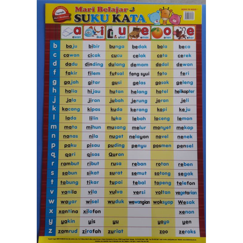 Carta Pendidikan Mari Belajar Suku Kata Shopee Malaysia