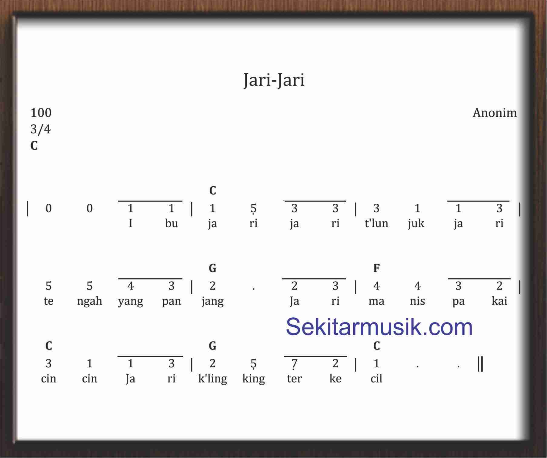 Not Angka Jari Jari Sekitar Musik